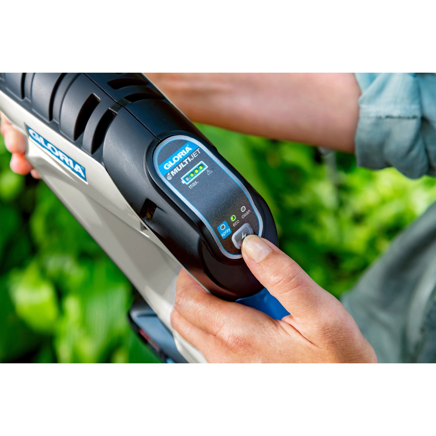 Die Gloria MultiJet 18V ist ein mobiles Hochleistungs-Sprühsystem mit integrierter Akku-Ladestandanzeige. mit dem sowohl gereinigt als auch Pflanzenschutz betrieben werden kann. Ein integrierter Wechselaufsatz macht die MultiJet 18V zum Multitalent. Mit wenigen Handgriffen wird aus einem kraftvollen Reinigungsgerät ein Schaumsprüher. eine Bürste für die Oberflächenpflege oder ein Sprühgerät. das Pflanzenschutzmittel gleichmässig ausbringt. Der Betriebsdruck lässt sich zwischen 2 und 25 bar in drei Stufen regulieren. somit kann sowohl schonend als auch kraftvoll gereinigt werden. Ob Eimer. See oder Wasserhahn - ein Ansaugschlauch saugt Wasser aus jeder beliebigen Quelle.