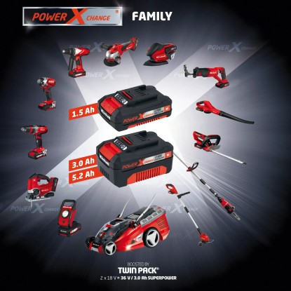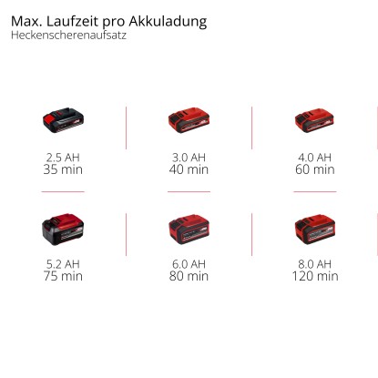 Im stabilen Köcher lässt sich die Heckenschere sicher und bequem transportieren und verstauen. Der Akku verfügt über eine Akku-Füllstandanzeige mit drei LEDs, auf der sich der aktuelle Ladezustand auf einen Blick ablesen lässt. Der Akku kann zudem für sämtliche Geräte der Power X-Change Familie verwendet werden. Zum Inhalt gehört ein zusätzliches Schnellladegerät, mit dem der Akku innerhalb 1 Stunde wieder vollständig geladen werden kann.