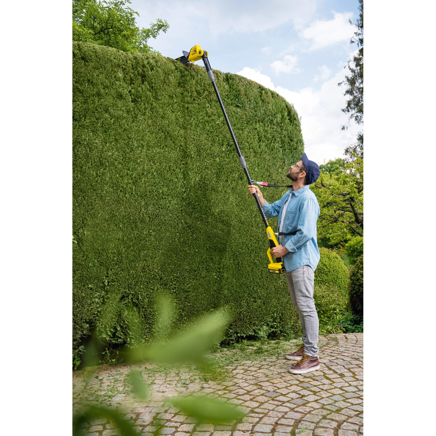 Mit der Kärcher Akku-Teleskop-Heckenschere PHG 18-45 Battery sind Sie jeder Höhe gewachsen.