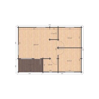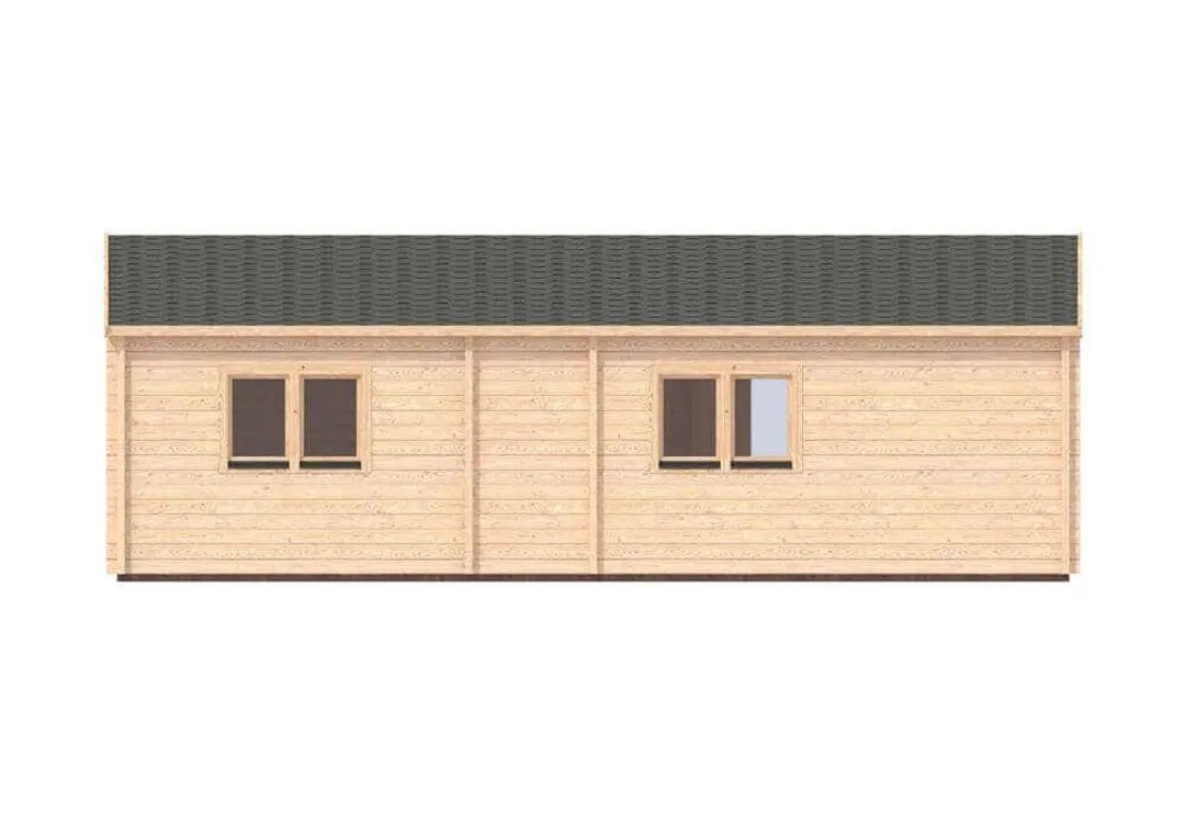 Das Gartenhaus wird ohne Dachpappe und Schindeln geliefert, diese können jedoch als Zubehör erworben werden. Das Material des Gartenhauses ist nordische Fichte und es wird in naturbelassenem Zustand geliefert. Optional ist auch eine werkseitige Imprägnierung erhältlich.