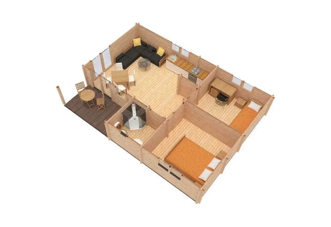 Im Lieferumfang sind ein Massivholzdach aus 19 mm Nut- und Federbrettern, ein Massivholzfussboden aus 19 mm Nut- und Federbrettern, eine stabile Blockbohlenbauweise für Wind- und Regendichtigkeit, imprägnierte Fundamenthölzer, eine Verglasung aus 4/12/4 mm Isolierglas, Gummidichtungen an Tür und Fenstern, eine hochwertige Türschwelle aus Metall, Türen mit Leimholzrahmen, Wasserleisten an den Fenstern, ein Zylinderschloss mit 2 Schlüsseln, eine Drückergarnitur, Sturmleisten zur Windsicherung, Montagematerial und eine Aufbauzeichnung enthalten.