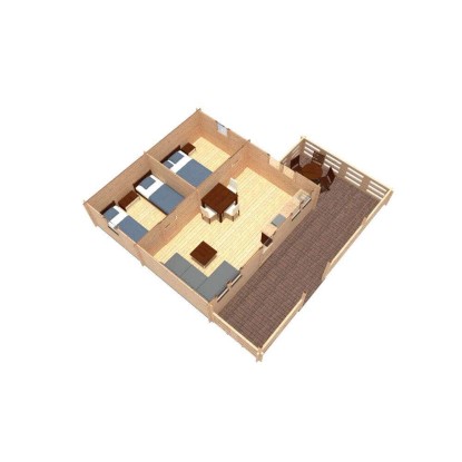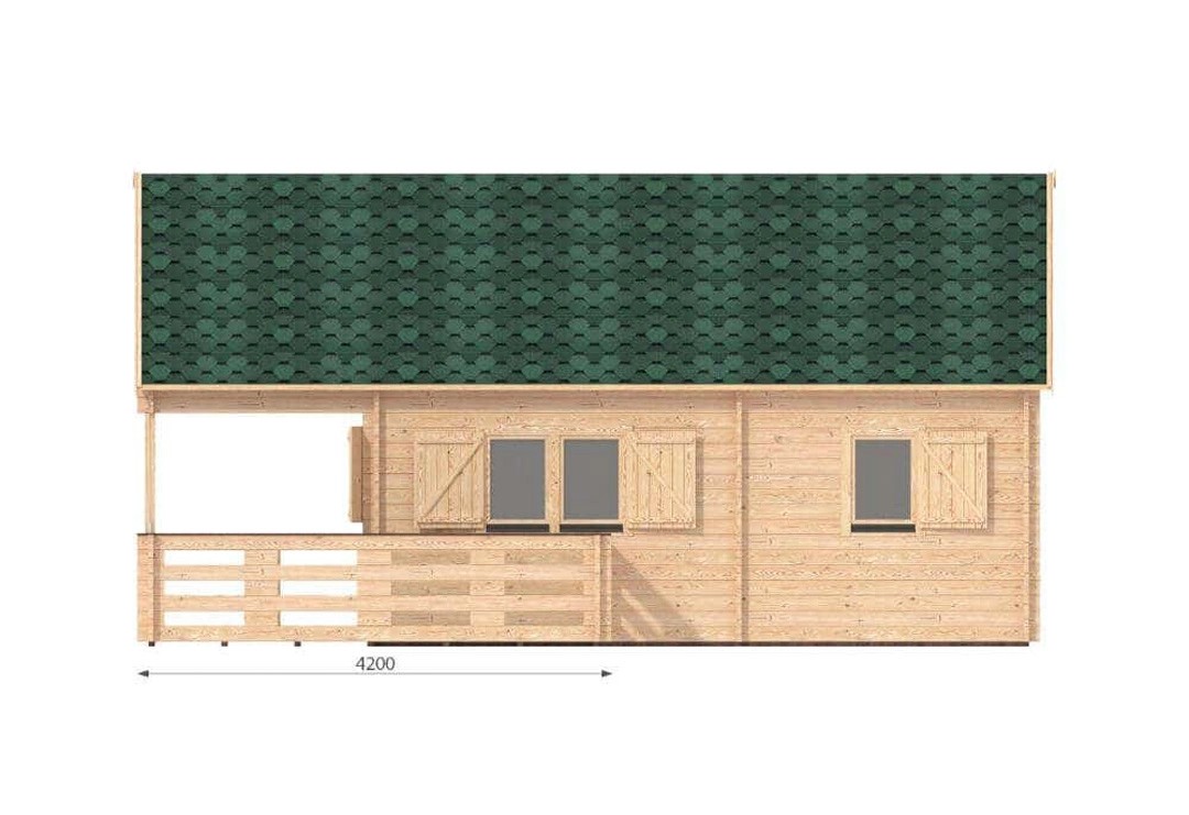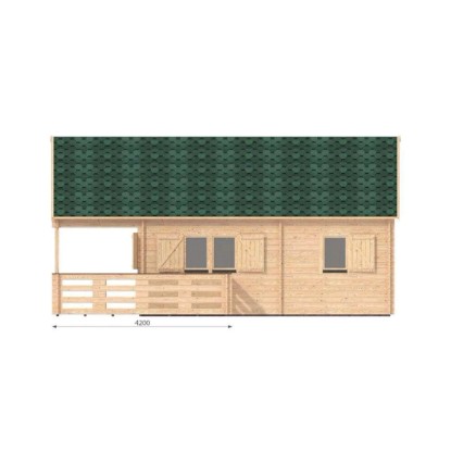 Das Gartenhaus ist aus tauchimprägniertem Holz in Blockbohlenbauweise gefertigt. Durch die hellbraune Imprägnierung ist das Holz vor Witterungseinflüssen geschützt. Das Gerätehaus verfügt über eine robuste Konstruktion, mit einer Wandstärke von 44 Millimetern. Das Dach des Gerätehauses ist als Satteldach konstruiert. Die Dacheindeckung ist separat erhältlich.