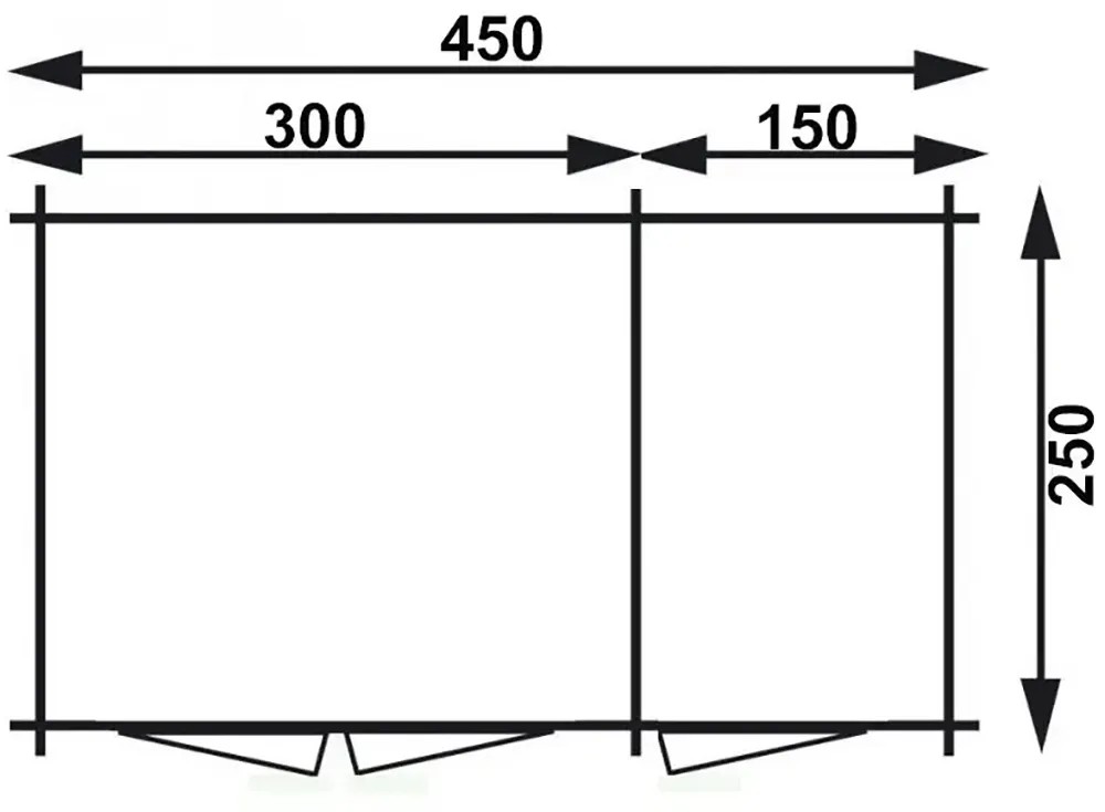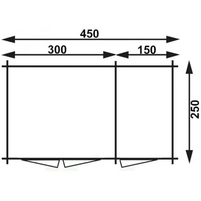 | Breite Sockelmass inkl. überdachte Aussenfläche: | 430 cm |