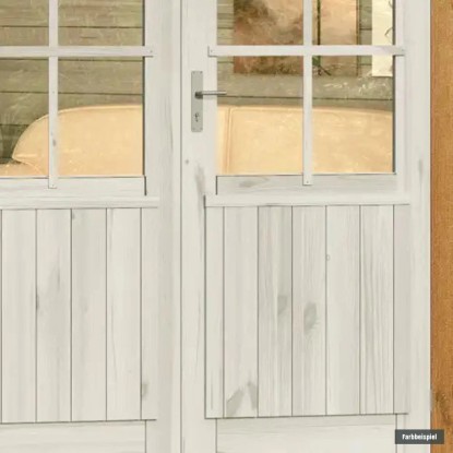 | hochwertige Doppeltür mit Leimholzrahmen und Verglasung aus Echtglas |