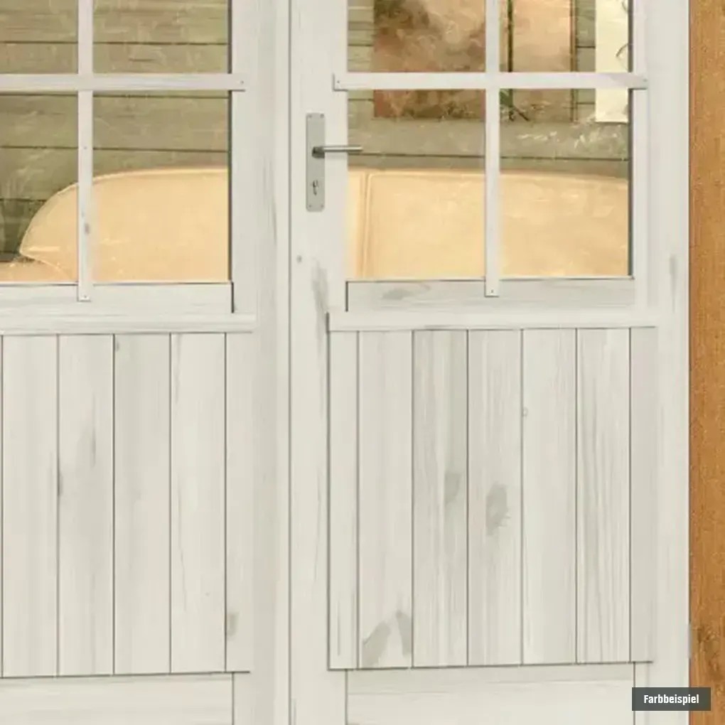 Durch die unbehandelte Oberfläche bleibt die natürliche Optik mit Holzmaserung erhalten. Gleichzeitig ist das Material durch die Kesseldruckimprägnierung bereits sehr gut gegen Holzschädlinge und Witterung geschützt. Zum zusätzlichen Schutz vor Witterungseinflüssen kann die Oberfläche individuell mit einer Lackierung oder Lasierung veredelt werden. Die Doppeltür sowie die beiden Fenster verfügen über eine Verglasung aus Echtglas und sorgen dafür, dass Sie die Sommersonne auch innerhalb des Gartenhauses ungehindert geniessen können. Dank des mitgelieferten Schlosses mit Drückergarnitur können Sie das Gartenhaus bei Bedarf jederzeit abschliessen.Wind- und wetterfeste Konstruktion dank Blockbohlenbauweise