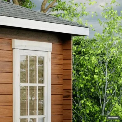Achtung: Fussboden und Fundamenthölzer sowie eine Dacheindeckung sind nicht im Lieferumfang enthalten.