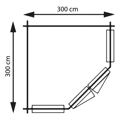 | Breite Sockelmass inkl. überdachte Aussenfläche: | 280 cm |