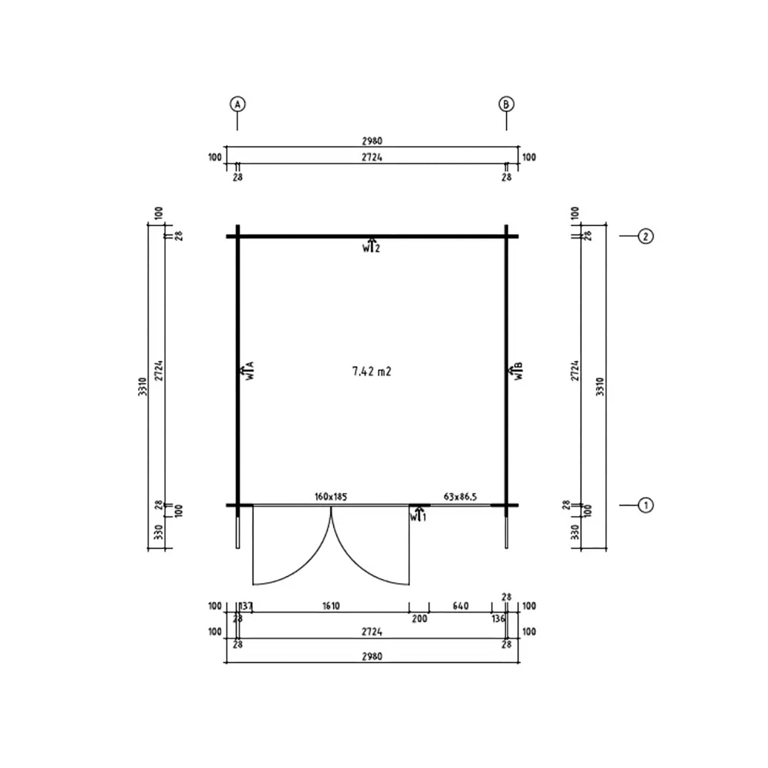 | Breite inkl. Dachüberstand: | 331 cm |