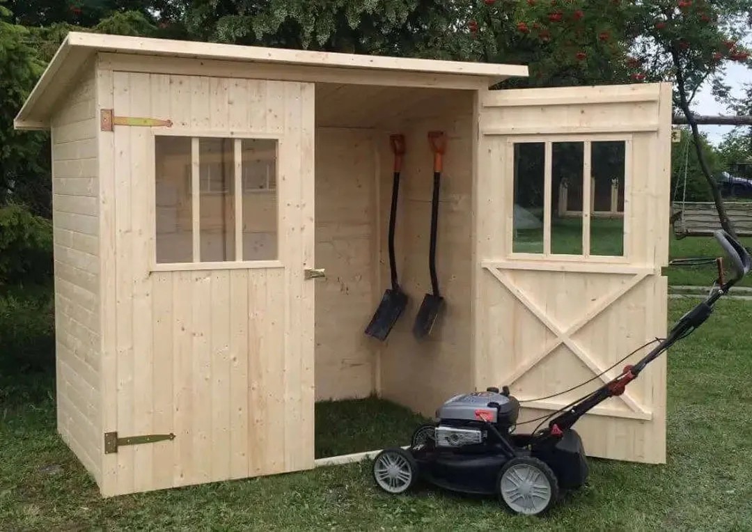 Holz-Gartenhaus mit praktischem Anbaudach