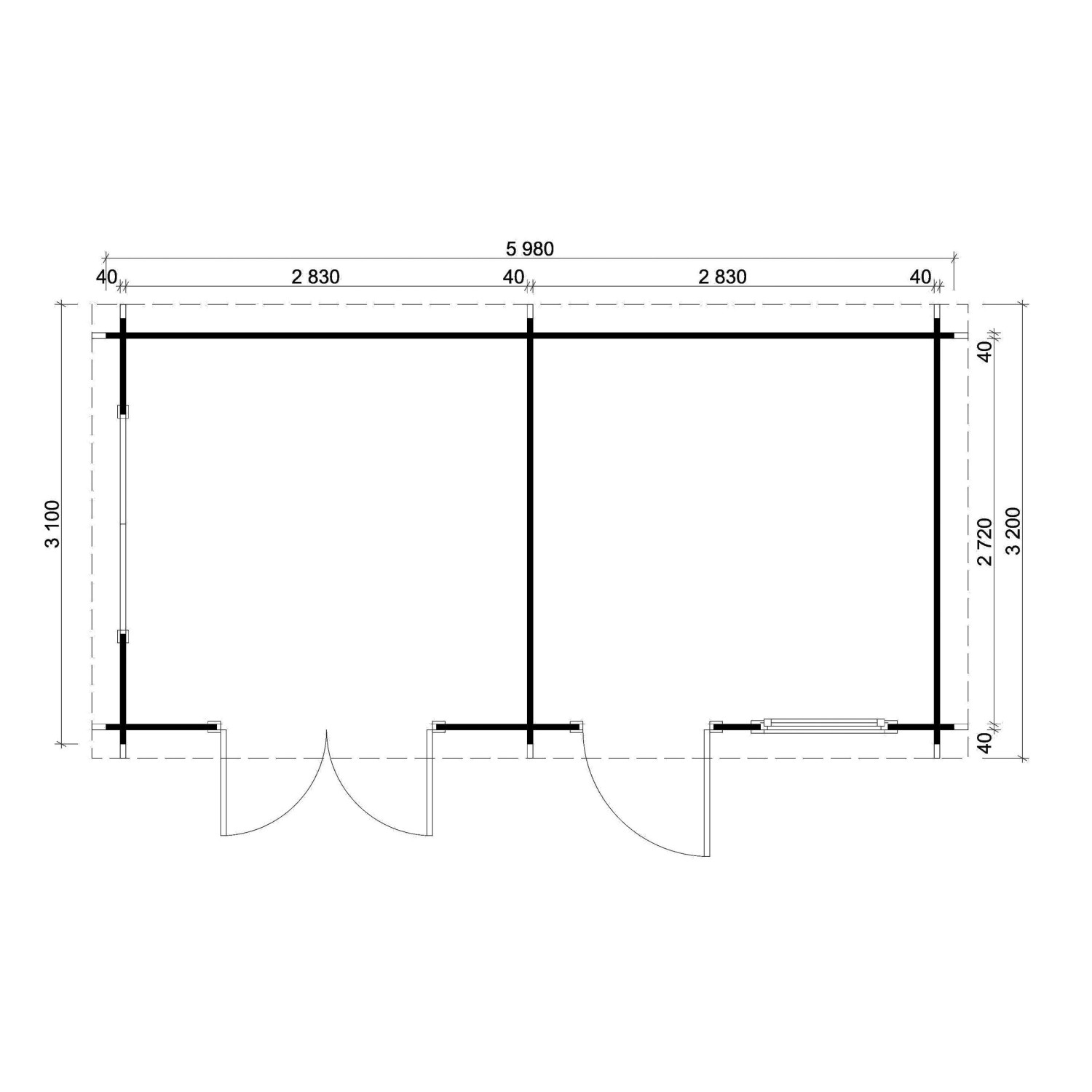 | Breite Sockelmass inkl. überdachte Aussenfläche: | 618 cm |