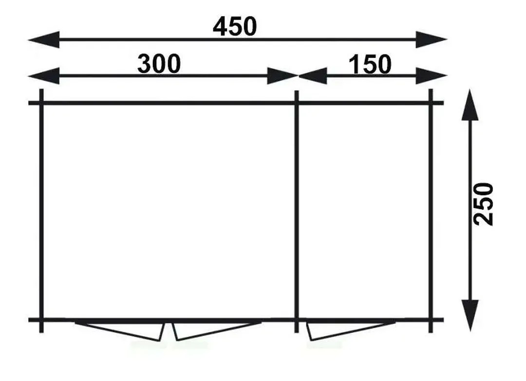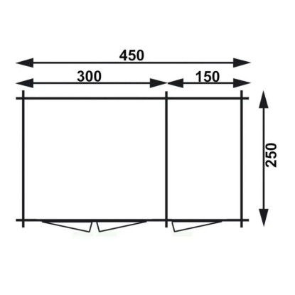 | Breite Sockelmass inkl. überdachte Aussenfläche: | 450 cm |