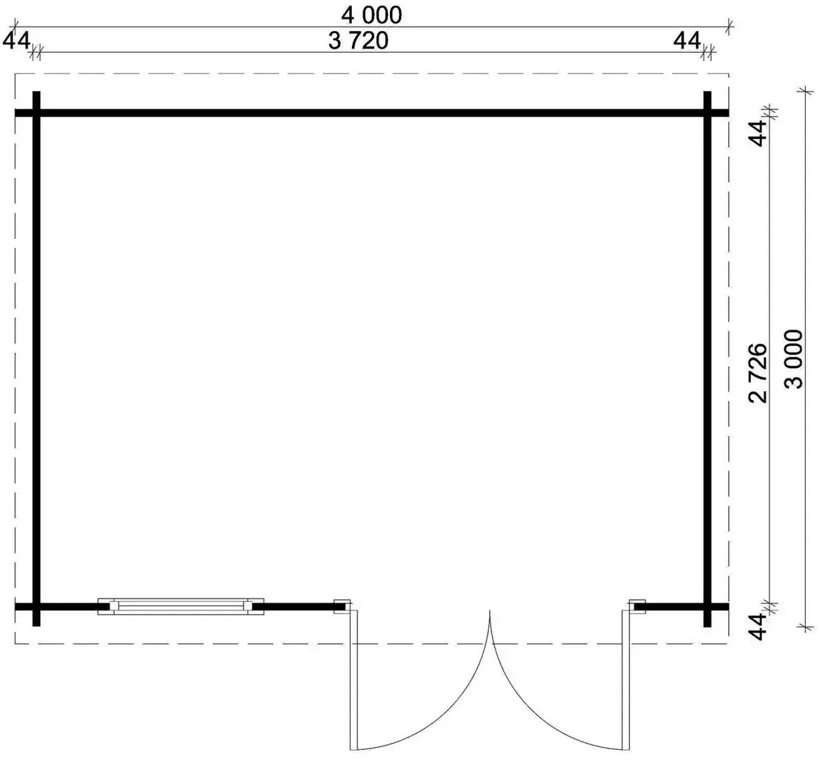 | Breite Sockelmass inkl. überdachte Aussenfläche: | 380 cm |