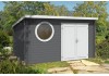 Das Gartenhaus ist aus unbehandeltem Holz in Blockbohlenbauweise gefertigt. Durch die naturbelassene Oberfläche bleibt eine natürliche Optik mit Holzmaserung erhalten. Zum Schutz vor Witterungseinflüssen sollte die Oberfläche individuell mit einer Lackierung oder Lasierung veredelt werden. Das Gerätehaus verfügt über eine stabile Konstruktion, mit einer Wandstärke von 44 mm. Die maximalen Schneelast des Pultdachs liegt bei 102 kg/m. Die Dacheindeckung ist separat erhältlich.