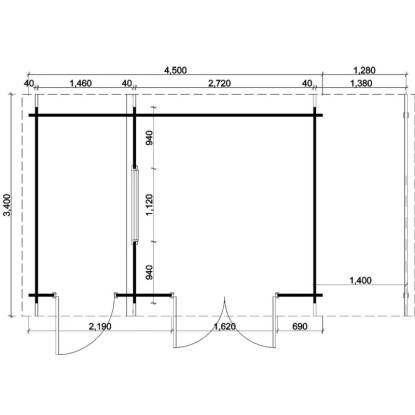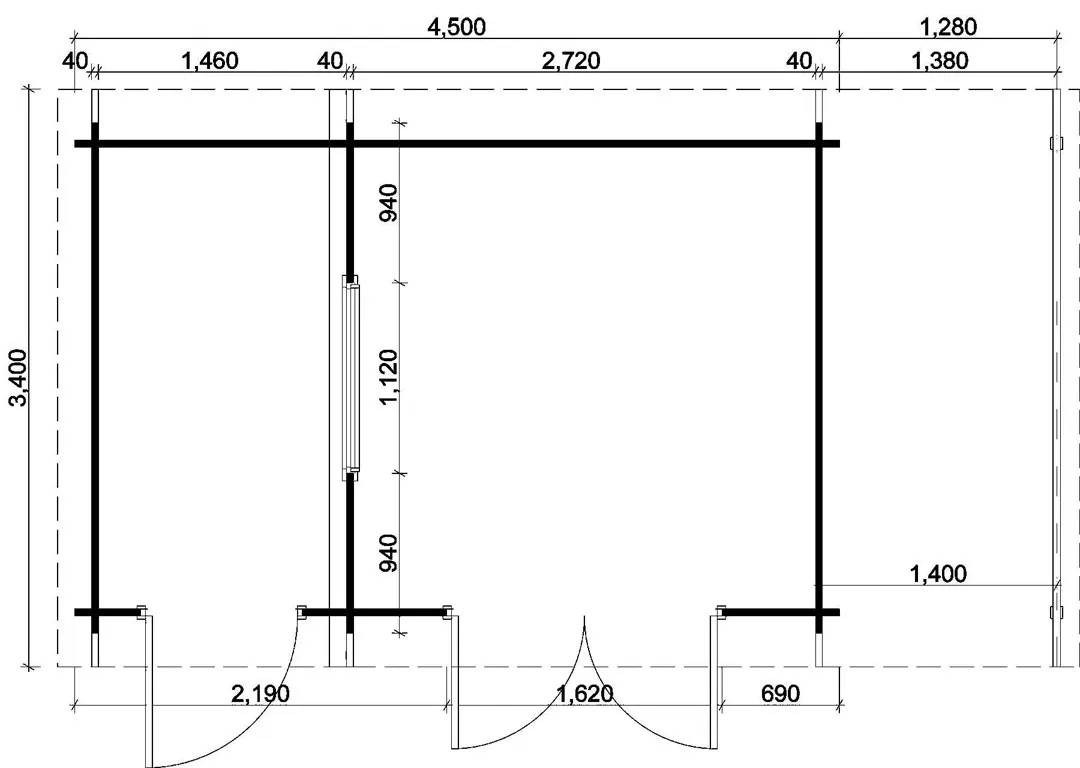 | Breite Sockelmass inkl. überdachte Aussenfläche: | 580 cm |