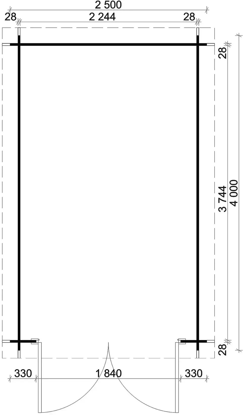 | Tiefe Sockel inkl. überdachte Aussenfläche: | 380 cm |