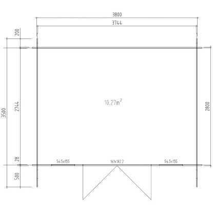 | Breite Sockelmass inkl. überdachte Aussenfläche: | 380 cm |