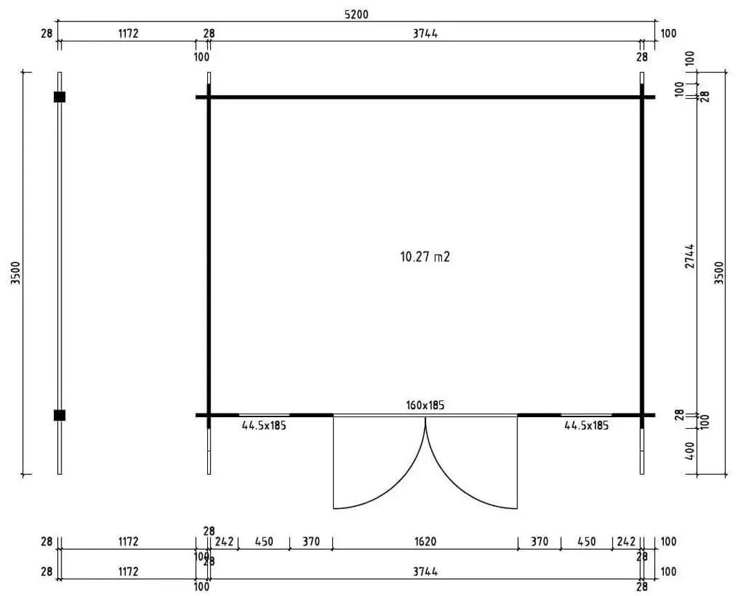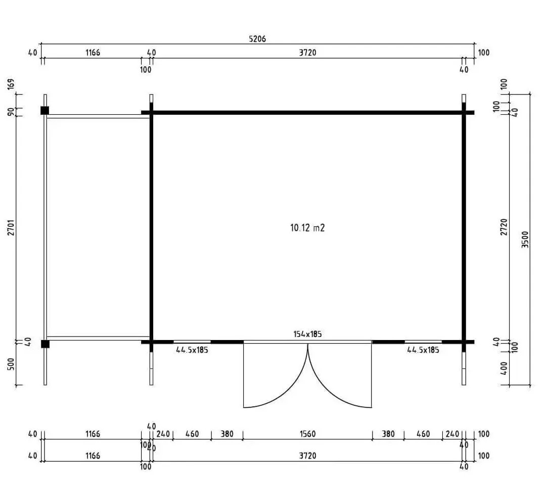 | Breite Sockelmass inkl. überdachte Aussenfläche: | 521 cm |