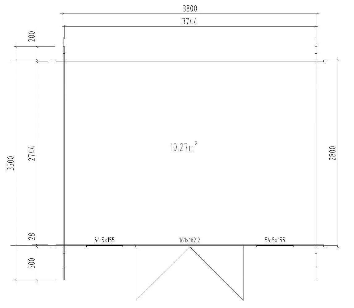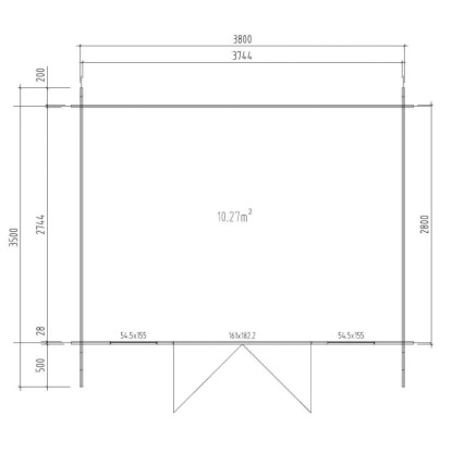 | Breite Sockelmass inkl. überdachte Aussenfläche: | 380 cm |
