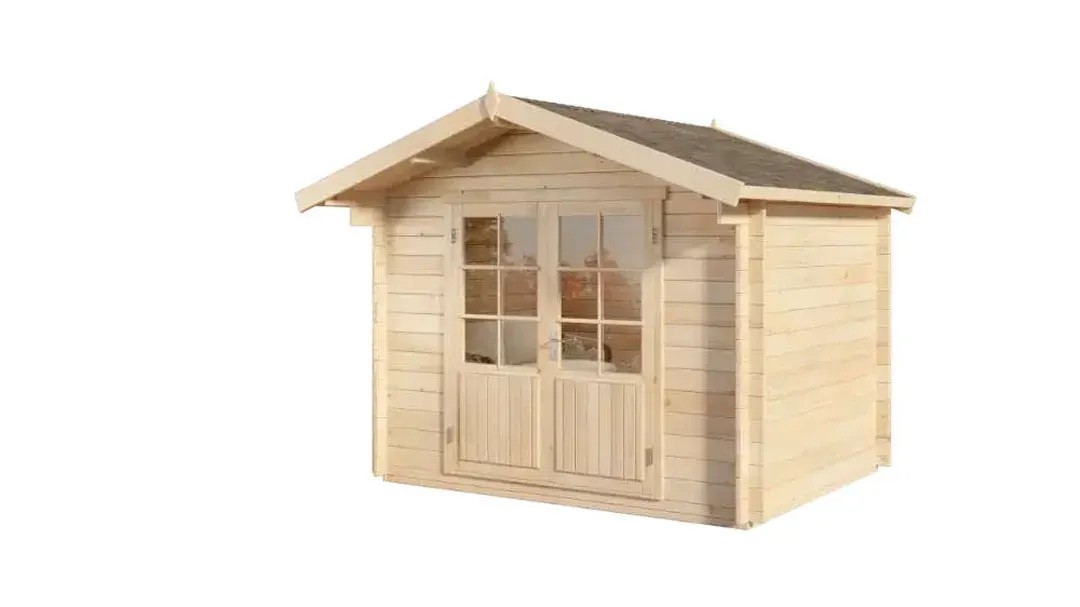 Das Alpholz Holz-Gartenhaus ist praktisch gestaltet. Die Firsthöhe beträgt 252 cm, wodurch eine angenehme Kopffreiheit im Innenraum gegeben ist. Der Boden ist separat erhältlich.
