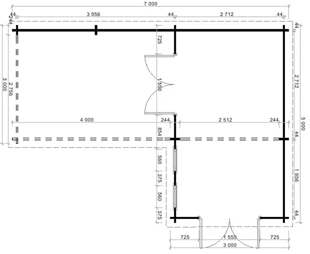 | Breite Sockelmass inkl. überdachte Aussenfläche: | 680 cm |