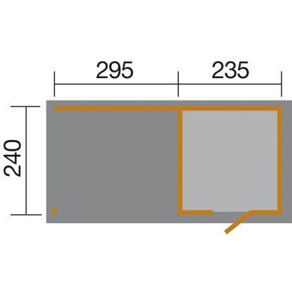 Abgebildete Dekorationen und Zubehör sind nicht im Lieferumfang enthalten. Der überdachte Aussenbereich besitzt keinen Fussboden.