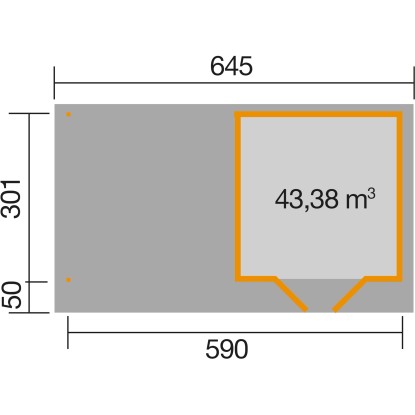 | Breite Sockelmass inkl. überdachte Aussenfläche: | 590 cm |