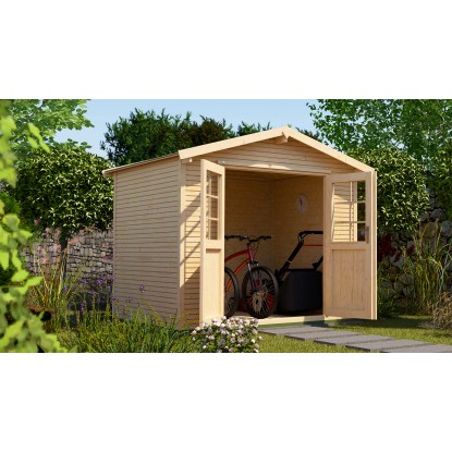 Das Weka Gartenhaus 218 mit einer Firsthöhe von 234 cm zeigt sich in Design und Funktion in perfekter naturbelassener Harmonie. Das Gartenhaus ist ein modern gestaltetes Holzhaus aus 28 mm dicken Blockbohlen im exklusiven WekaLine Profil und dadurch ein echter Blickfang. Die einfache Bauweise mittels modernem Schraubsystem erleichtert den Aufbau. Das Satteldach und der Fussboden des Gartenhauses bestehen aus einer 16 mm starken, naturbelassenen Nut- und Federschalung. Inkl. Zylinderschloss.