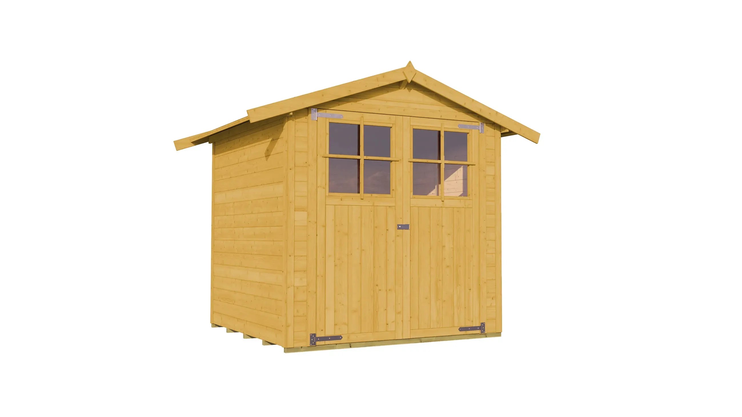 - Dach: 19 mm, Massivholzdach, Satteldach