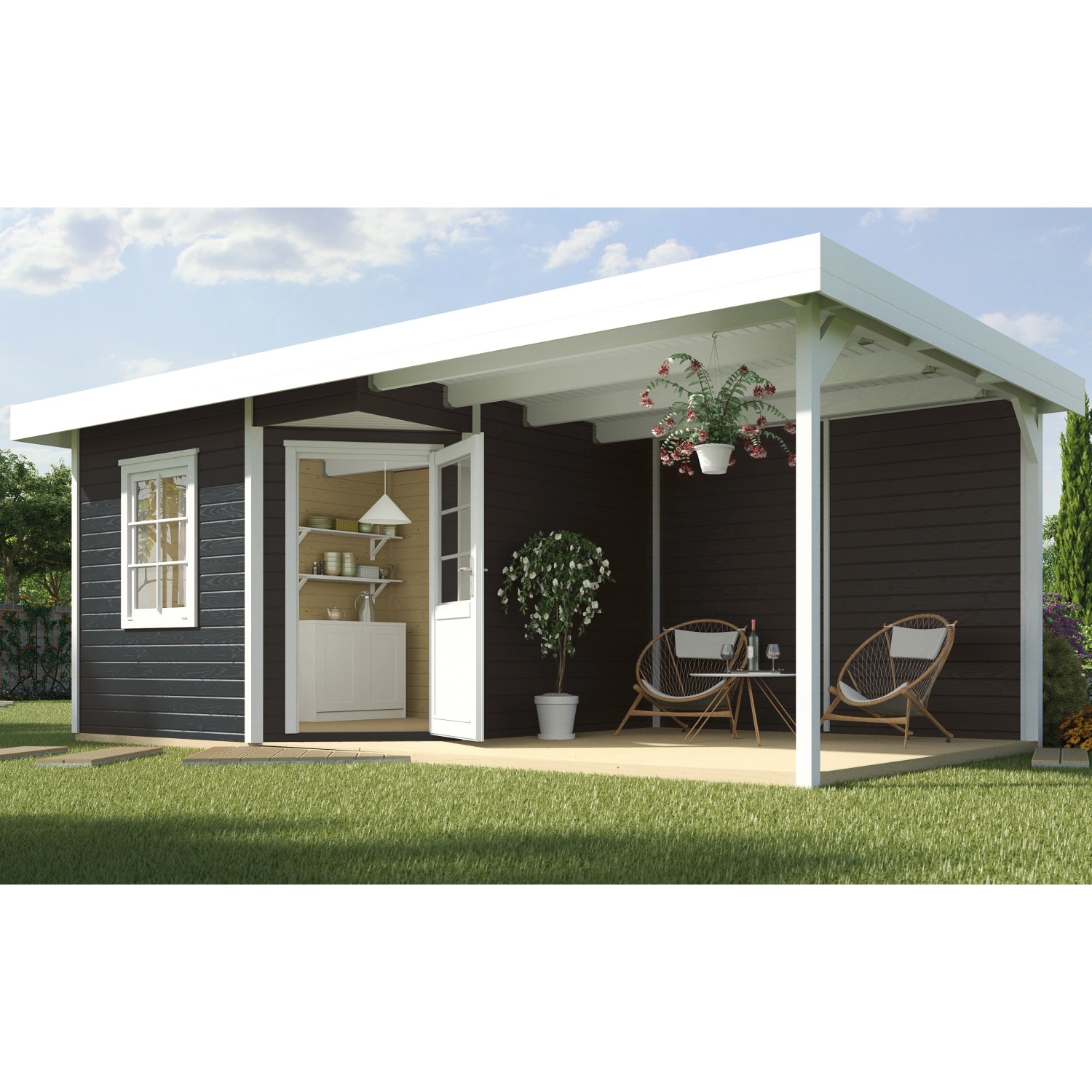 Weka Gartenhaus San Remo B Anthrazit 601 x 298 cm / inkl. Terrasse 303 cm
