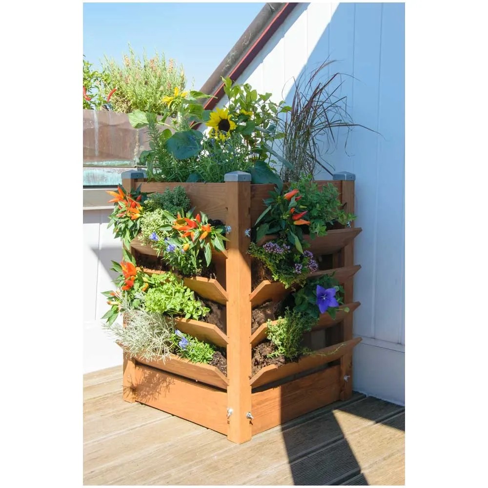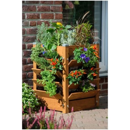 Das wetterfest lasierte Hochbeet aus FSC®-zertifiziertem Kiefernholz kann auch als Vertikalbeet und Komposter genutzt werden. Die schräg gestellten Bretter bieten zusätzliche Anbaufläche an den Seiten. Es eignet sich ideal für Garten, Terrasse und Balkon und ermöglicht eine abwechslungsreiche Bepflanzung oder das Kompostieren von organischen Abfällen auf kleinstem Raum. Das Hochbeet wird inklusive Montageset und Aufbauanleitung geliefert.