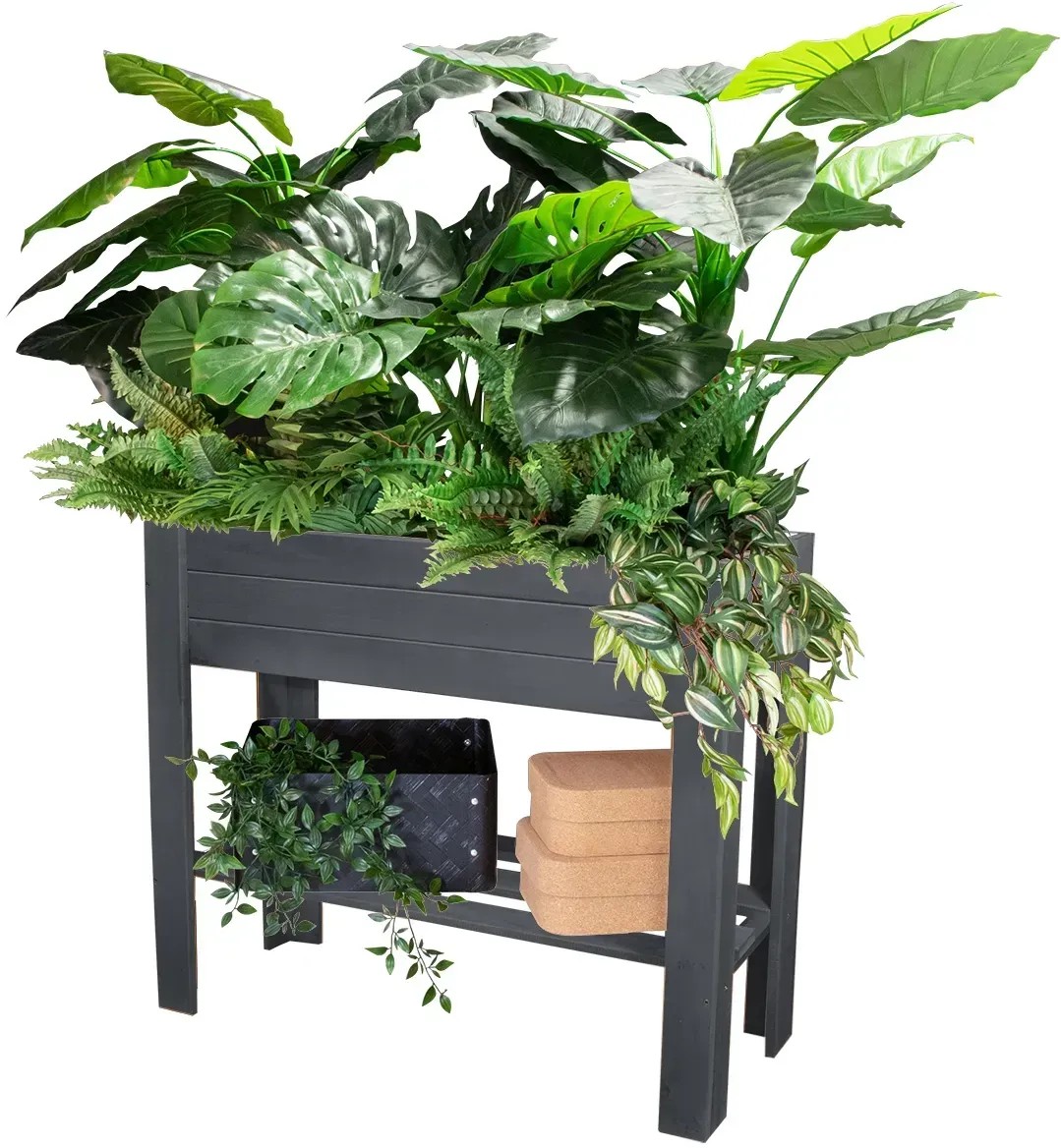 Die 70 cm hohe Pflanzfläche des Hochbeets Green Box Light erlaubt ein rückenschonendes Gärtnern und macht ihre Bepflanzung und Bewirtschaftung leicht und bequem. Besonders komfortabel: Eine geräumige Ablagefläche für Deko, Pflanzgefässe oder Giesskanne bietet zusätzlichen Nutzen für Pflanzenfreunde. Zu mehreren in einer Reihe platziert oder als Umrandung einer Aussenfreifläche dient das Hochbeet als begrünter Sicht- und Windschutz. Eine Pflanztasche aus reissfestem Spezialkunststoff kann in die Pflanzbox eingelegt und beim Einsatz des Holzhochbeetes im Freien mit Erde befüllt und direkt bepflanzt werden. Die Alternative: Im Innenbereich kann die Pflanztasche mit Pflanzgefässen bestückt werden und verhindert das Abfliessen von Giesswasser auf den Bodenbelag.