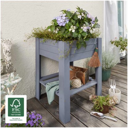 Material und Montage: Die moderne Pflanzbox ist aus FSC®-zertifiziertem Massivholz gefertigt und mit einer Schutzlasur in der Trendfarbe Anthrazit behandelt.