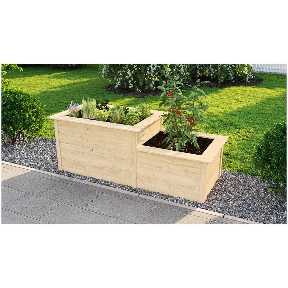 Das Weka Stufenhochbeet 669 in der Variante naturbelassen bietet Ihnen das Gärtnern auf zwei Ebenen an. Der Hingucker in Ihrem Garten. Gefertigt aus nordischem Fichtenholz (Nut- und Federbretter) in 21 mm Wandstärke. Die Abmessungen sind (HxBxT) 81 x 205 x 79 cm. Die innenliegende Noppenfolie zum Schutz der Wände und die zusätzlicher Gewindestange runden die Ausstattung ab. Die Montageanleitung und das Montagematerial gehören zum Lieferumfang.