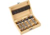Das fünfteilige LUX-TOOLS Forstnerbohrer-Set erleichtert saubere und ausrissfreie Bohrungen in weiche Hölzer. Bei der Aufnahme handelt es sich um einen Zylinderschaft. Das Set beinhaltet je einen Forstnerbohrer in den Grössen 15 mm, 20 mm, 25 mm, 30 mm und 35 mm, die in einer praktischen Aufbewahrungsbox aus Holz verpackt sind.