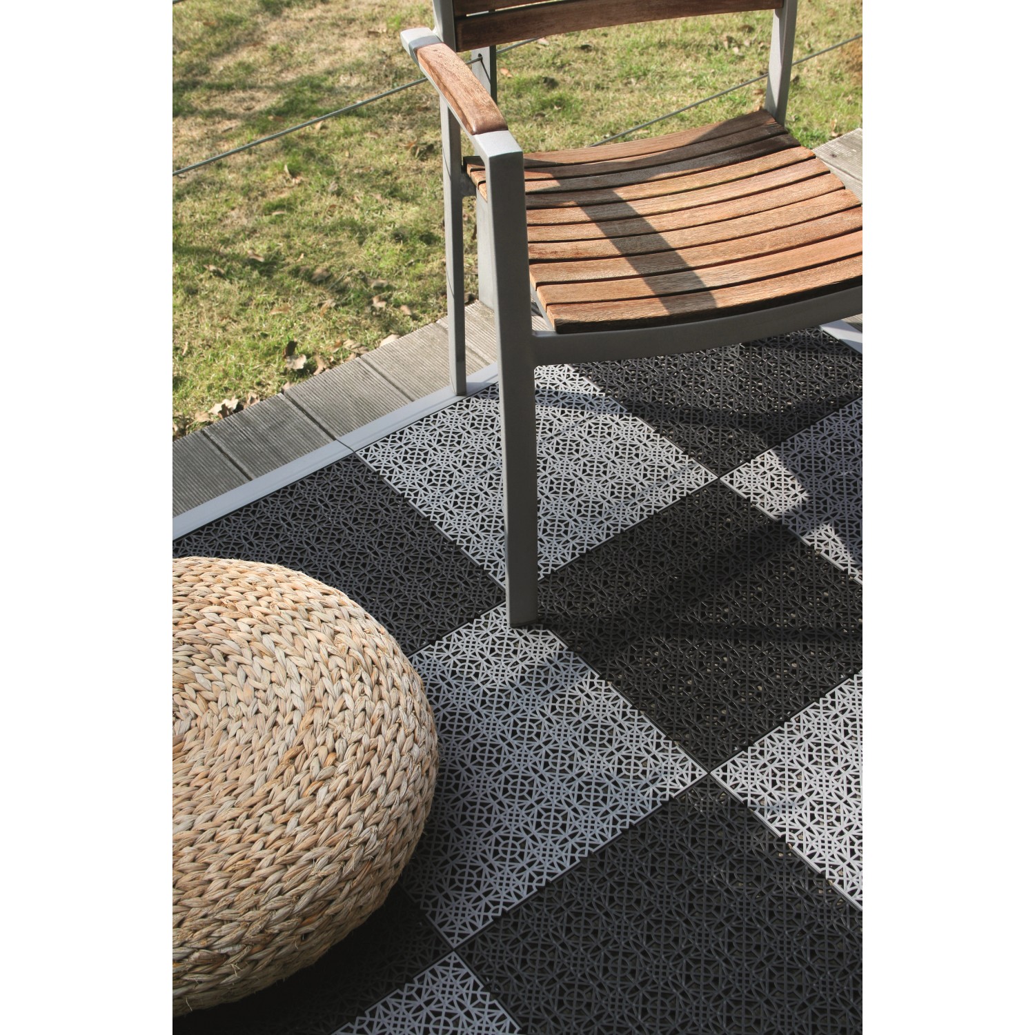 Gestalten Sie Ihren Aussenbereich ganz nach Ihren wünschen mit der Andiamo Klick-Fliese Terra Sol in Hellgrau. Dank des raffinierten Designs und der verschiedenen Farben lassen sich ganz individuelle Muster gestalten. Egal ob auf Ihrem Balkon oder auf Ihrer Terrasse, ein Hingucker sind sie in jedem Bereich. Die dazugehörigen Eck- und Kantenleisten sind separat erhältlich.