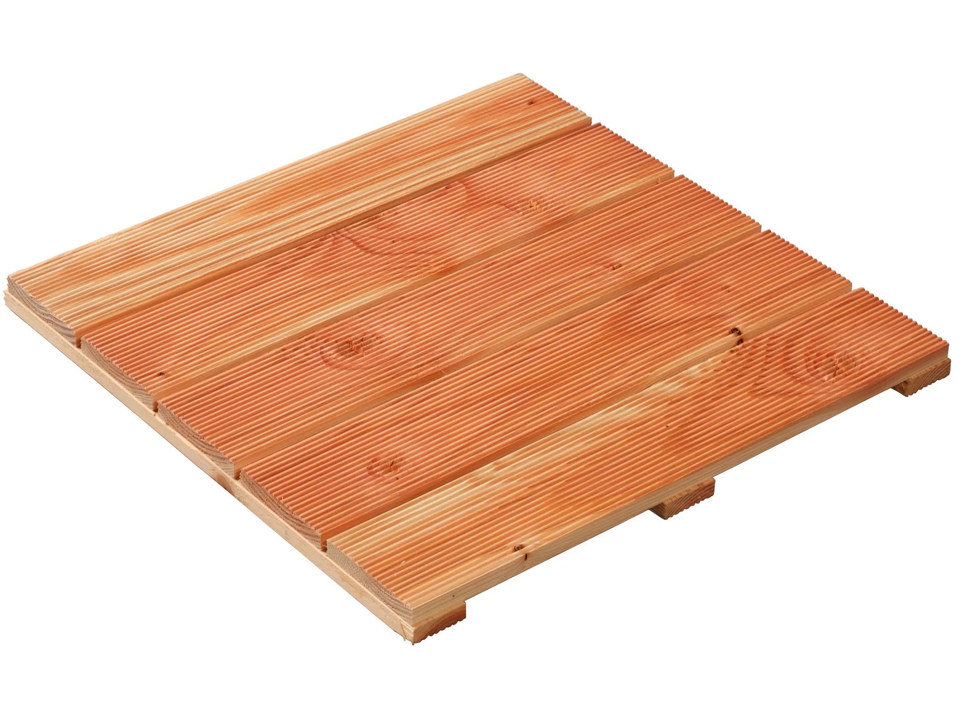 Hochwertige, unbehandelte Douglasie zur Gestaltung z. B. von Terrassen und Balkonen. Hohe natürliche Resistenz gegen Pilze und Insekten durch natürliche Inhaltsstoffe. Der hohe Harzgehalt wirkt als natürlicher Holzschutz. Die Fliese ist barfussfreundlich, da sie keinen chemischen Holzschutz beinhaltet. Dazu haben Sie eine bessere Rutschsicherheit bei Nässe durch die geriffelte Oberfläche.