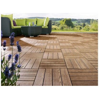 Aufgrund der Zusammensetzung sind die Klick-Fliesen splitter- und astfrei und verfügen darüber hinaus über ein rutschfestes Profil. Zudem ist das Material besonders witterungsbeständig und sehr leicht in der Pflege. Auch ein Befall von Insekten, Pilzen oder Moos lässt sich auf diese Art und Weise gut vermeiden. Eine Vorbehandlung der Bangkirai Klick-Fliesen ist somit nicht notwendig und erspart Ihnen wertvolle Zeit. Das handliche Mass von 30 x 30 cm ermöglicht Ihnen dabei eine ausgezeichnete Flexibilität hinsichtlich des gewünschten Anwendungsbereichs. Auf diese Art und Weise lassen sich die Bangkirai Klick-Fliesen hervorragend auch auf kleineren Flächen auslegen wie beispielsweise auf einem Balkon. Der Lieferumfang der WPC Klick-Fliesen entspricht dabei jeweils 6 Stück. 6 Klick-Fliesen decken eine Fläche von 0,54 m².
