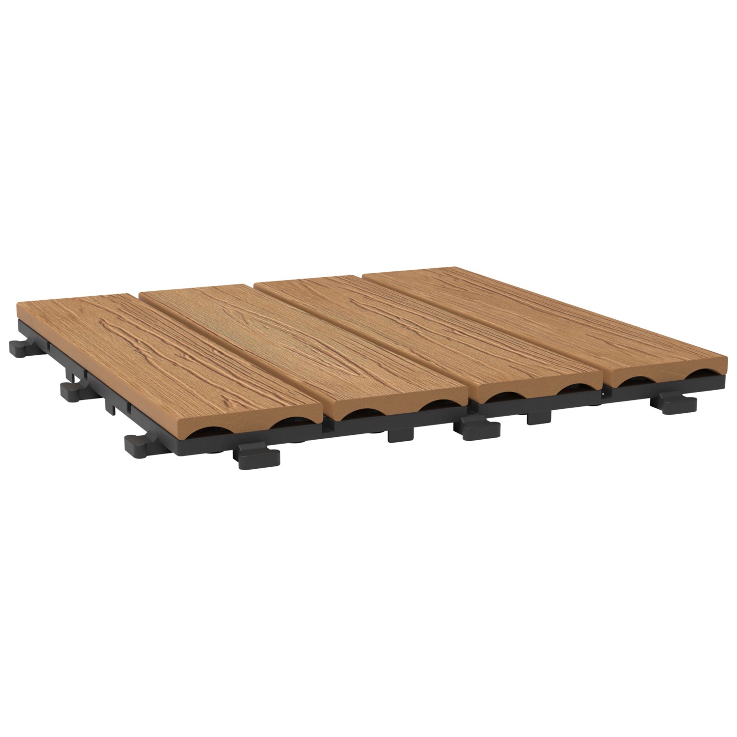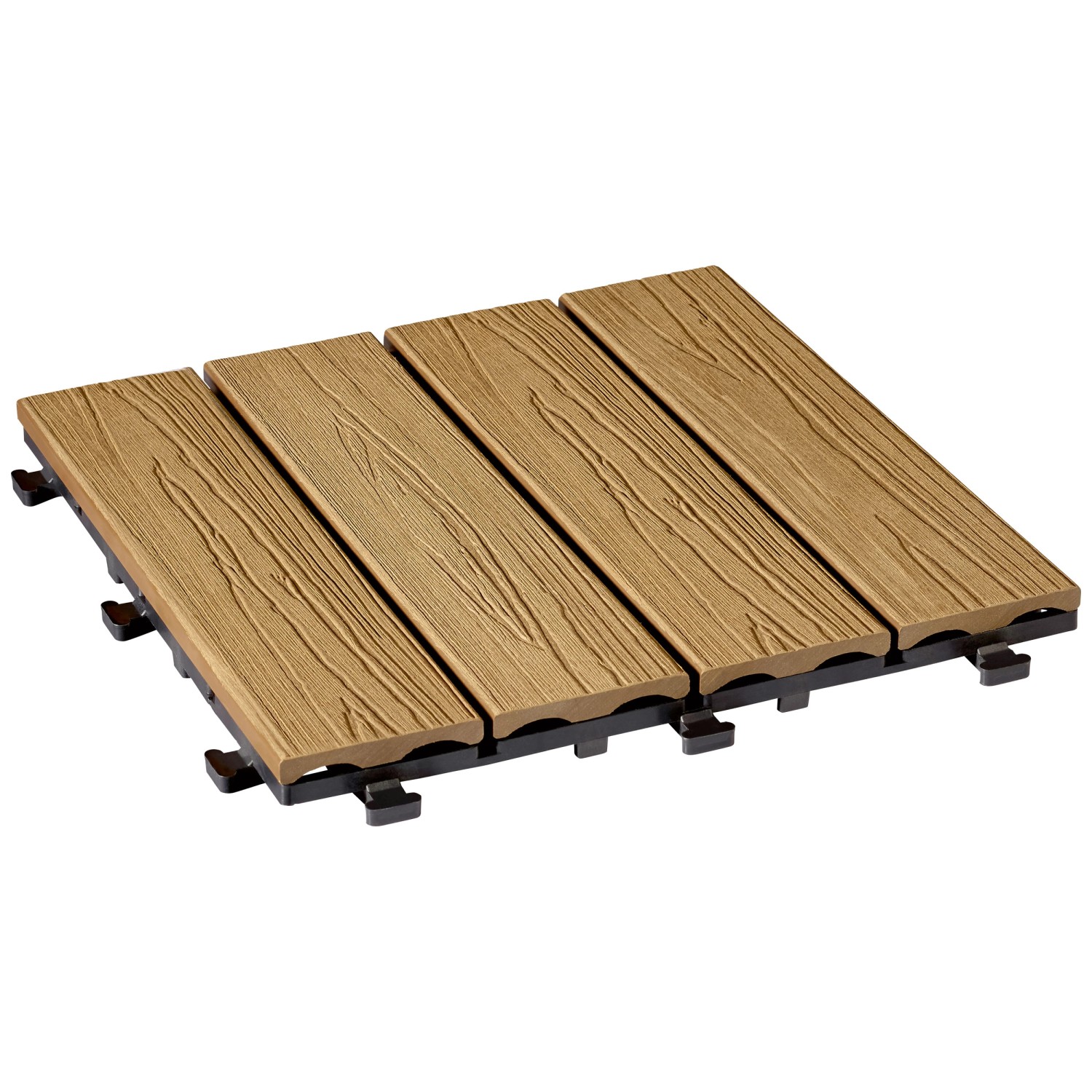 Die WPC Klick-Fliese in der Holzstruktur-Optik Bangkirai besticht durch ihre einfache Bauweise, welche das Verlegen des Terrassenbodens zu einer mühelosen Heimwerkerarbeit für Sie zu Hause macht.