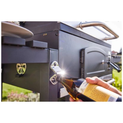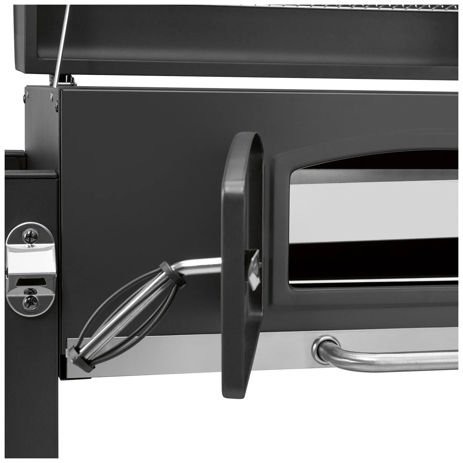 Die Luftzirkulation steuern Sie einfach über die Lüftungsschieber im Deckel und an der Seite der Kohlewanne. Zusätzlich haben Sie die Möglichkeit, die Kohlewanne in 5 Stufen zu verstellen und so Ihr Grillgut weiter weg von oder näher an die Hitze zu bringen. Die vordere Kohleklappe ermöglicht das unkomplizierte Nachlegen von Holzkohle oder Briketts, damit Sie Ihren Grill jederzeit nachheizen können. Die Temperatur im Garraum haben Sie dabei einfach mit dem integrierten Deckelthermometer im Blick.