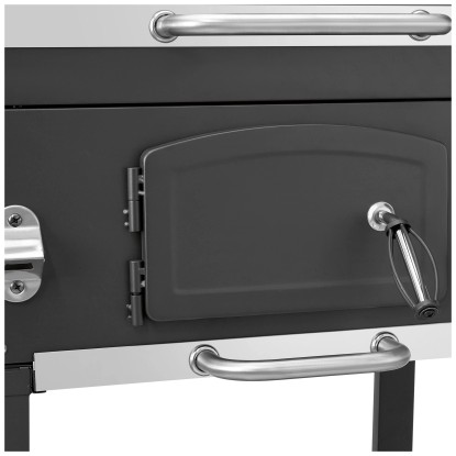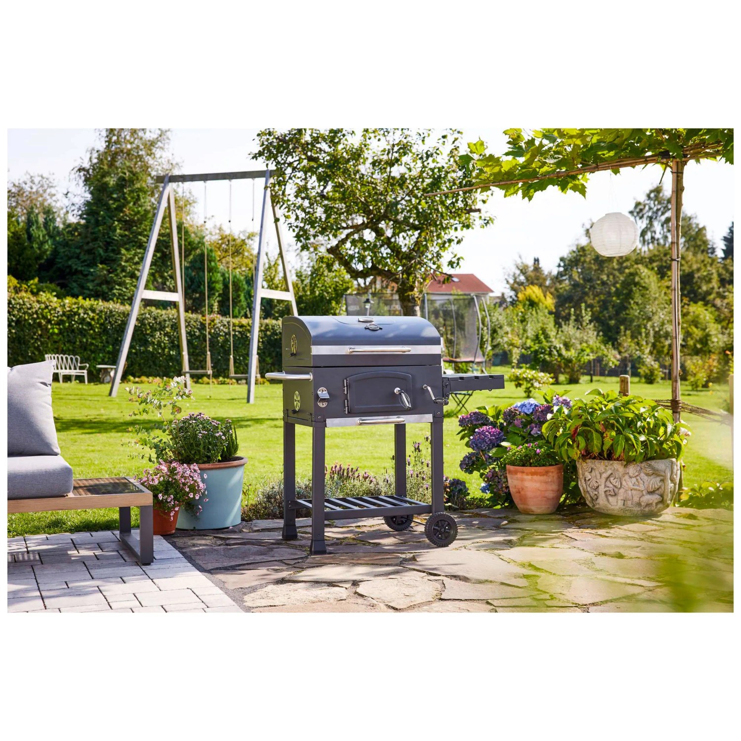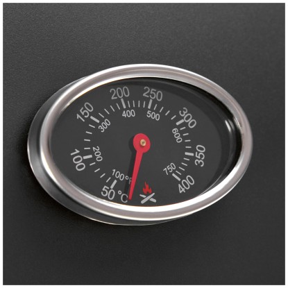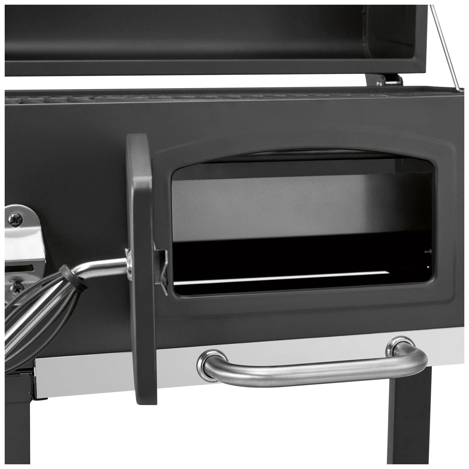 Über die praktischen Lüftungsöffnungen steuern Sie die Luftzirkulation und somit die Hitze. Zusätzlich können Sie mit der Kurbel die Höhe der Kohlewanne und somit den Abstand zur Hitze stufenlos verstellen. So ist Ihr Grillgut immer der richtigen Temperatur ausgesetzt. Durch die Kohleklappe können Sie jederzeit Brennmaterial nachlegen und Ihrem Grillgut so richtig einheizen. Die Temperatur im Garraum können Sie einfach mit dem integrierten Deckelthermometer ablesen.