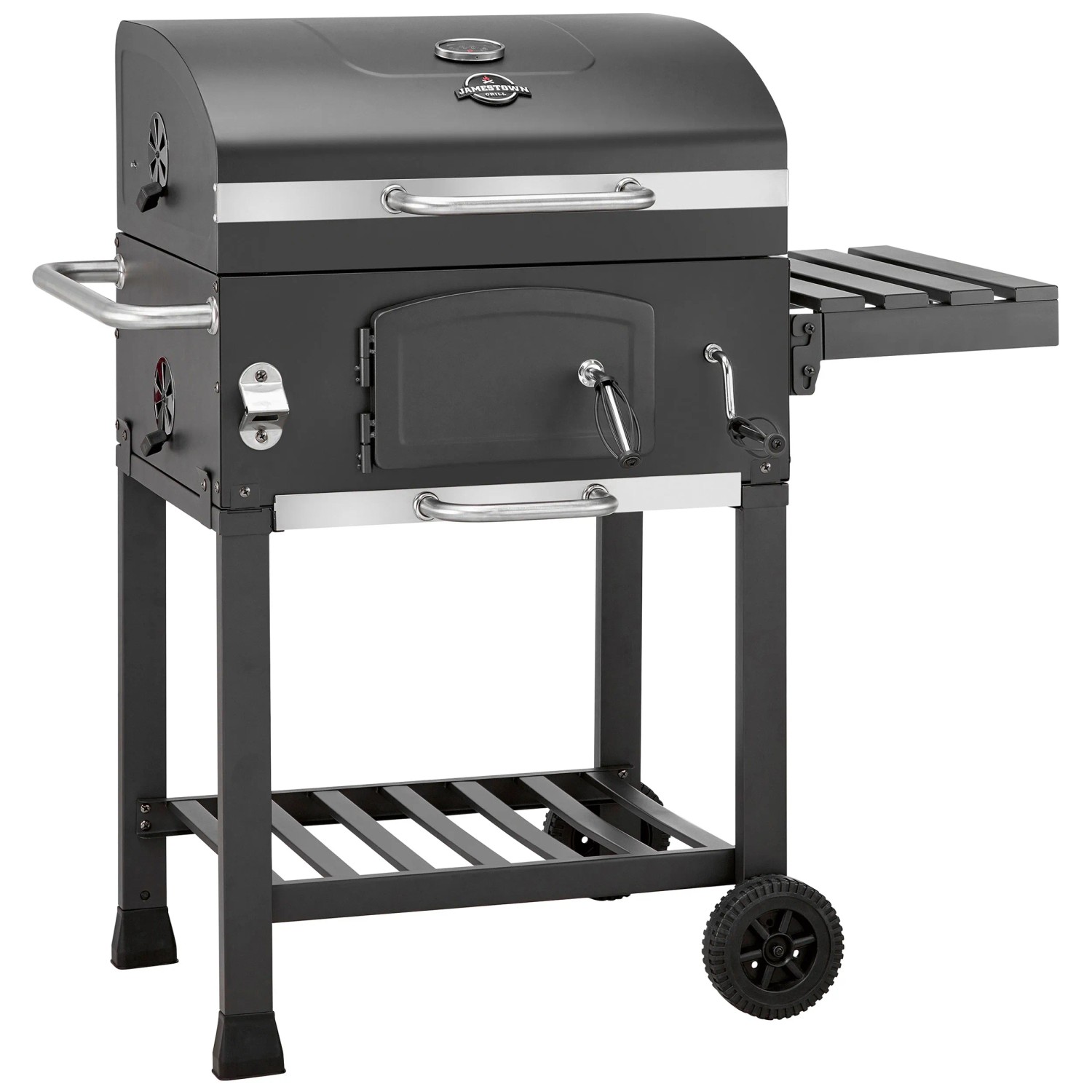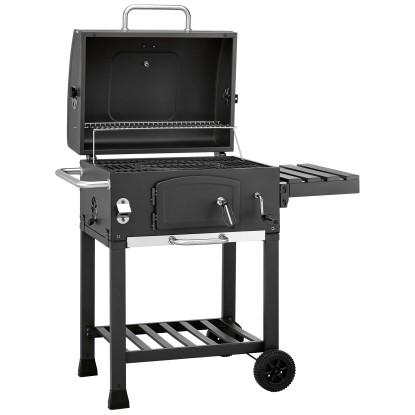 Feuer, Glut und Raucharomen: Der Jameswton Holzkohle-Grillwagen bietet Ihnen unverwechselbaren Grill-Geschmack für Ihr Grillgut - egal ob Steaks, Burger, Fisch oder Gemüse. Der Holzkohlegrill mit einer Grillfläche von 57 x 41,5 cm ist optimal für Gartenpartys mit Freunden oder Familienfeste geeignet.