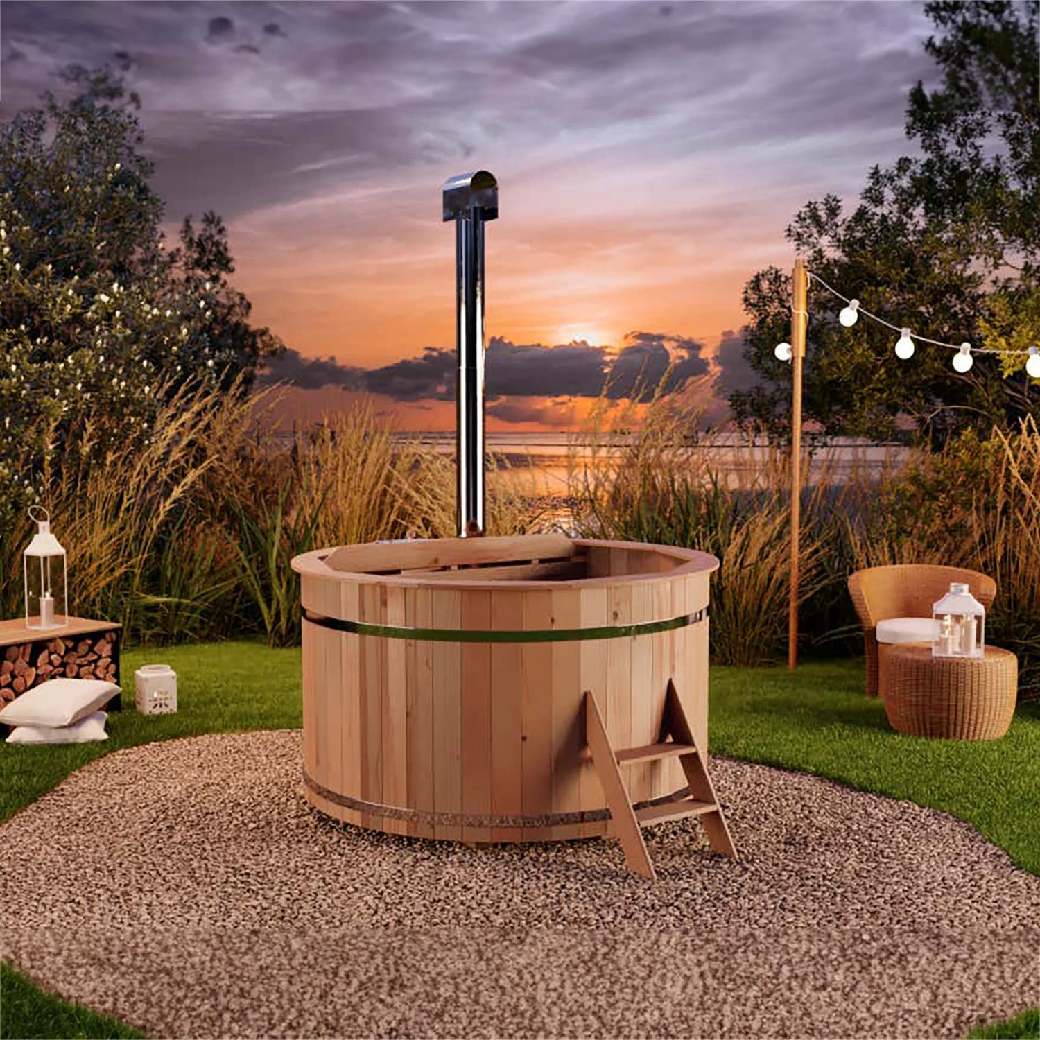 Um die gewünschte Wassertemperatur zu erreichen, wird das Badefass mit einem separat erhältlichen Holzofen beheizt. Die durch den Ofen erzeugte Wärme sorgt für ein angenehmes Badeerlebnis. Mit dem eingebauten Holzofen heizen Sie das Badewasser im Zuber um ca. 5°C/h auf.Das verwendete Holz ist naturbelassen. Die vom Wasserdampf freigesetzten ätherischen Öle können zur Entspannung beitragen.