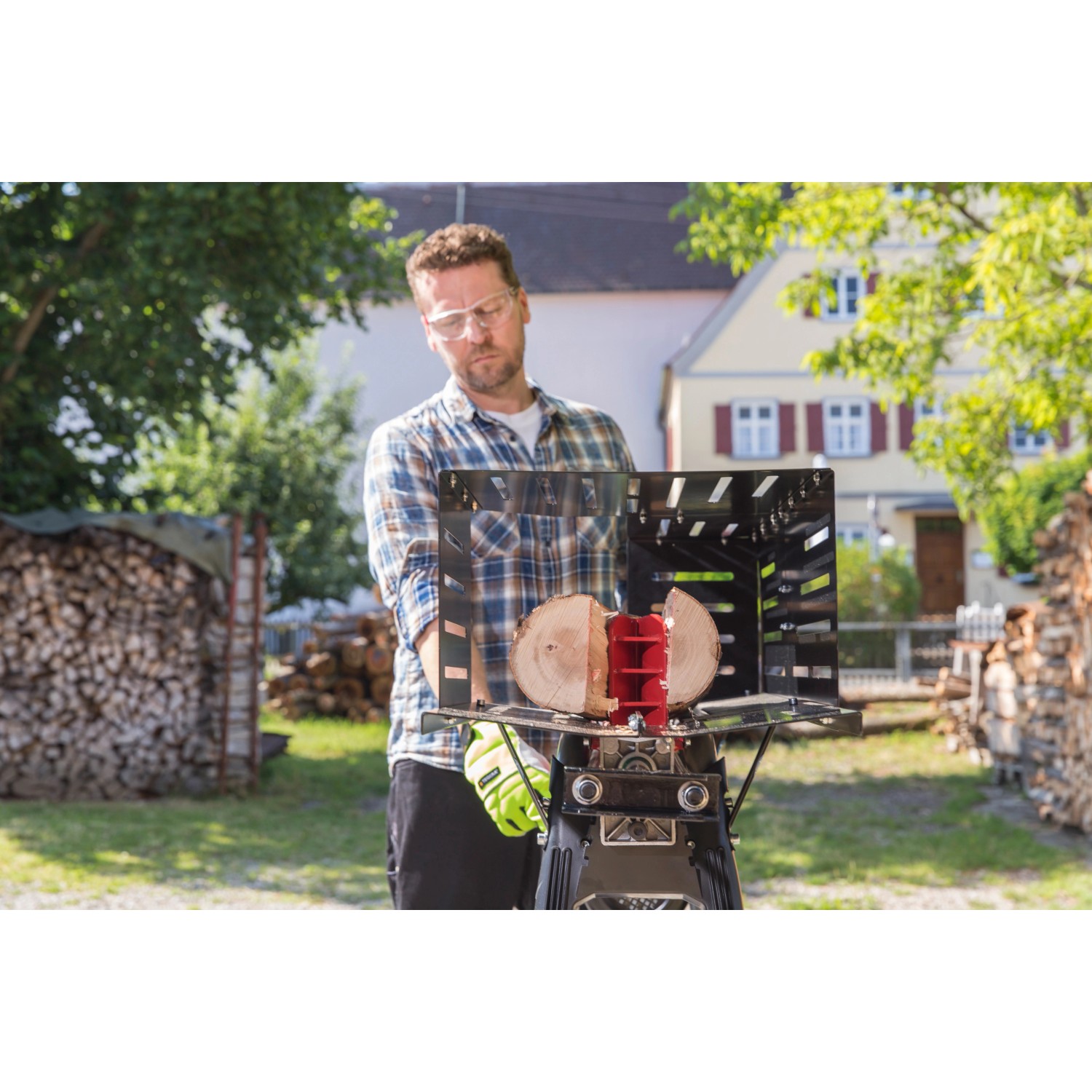 Trotz der Zwei-Hand-Sicherheitsbedienung und der damit verbundenen Gefahrenverringerung empfehlen wir Ihnen, beim Betrieb des Spalters Sicherheitsschuhe, Schutzbrille und Handschuhe zu tragen. Achten Sie beim Betrieb darauf, den Holzspalter auf einen festen, geraden Untergrund zu stellen. Ideal und ergonomisch zu betreiben, beispielsweise auf einer Werkbank.