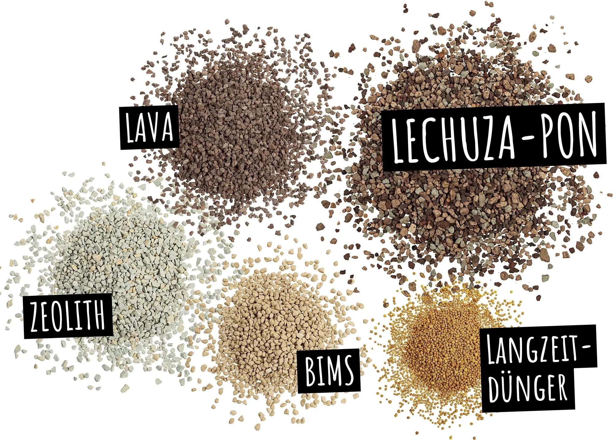 Das Pflanzensubstrat Pon besteht aus hochwertigen, mineralischen Gesteinen, die frei von Verunreinigungen und Schadstoffen sind. Es besitzt ein für Pflanzen optimales Luft-Wasser-Verhältnis (45 % Wasser und 55 % Luft). Die Anfälligkeit für Krankheiten wird hierdurch gemindert. Das enthaltene Zeolith stabilisiert dauerhaft den optimalen pH-Wert in Ihrem Pflanzgefäss und sorgt so für ein gesundes Pflanzenwachstum. Makro- und Mikronährstoffe bleiben dauerhaft frei verfügbar.