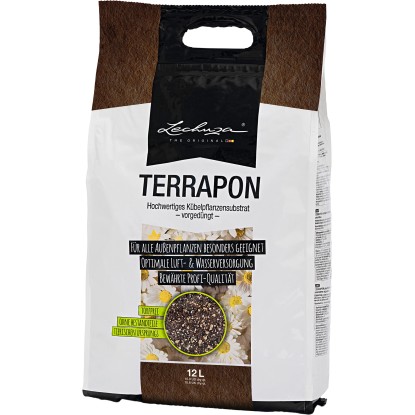Das hochwertige Pflanzensubstrat Terrapon 12 l kombiniert die Vorzüge von organischem Humus mit mineralischen Komponenten wie Bims und gebrochenem Blähton. Das Pflanzensubstrat der Marke Lechuza wird aus hochwertigen Rohstoffen, so wie sie auch im professionellen Gartenbau verwendet werden, hergestellt: Bims, gebrochener Blähton und eine wirksame Düngerkombination. Der Anteil an frischem Naturton wirkt als natürlicher Wasser- und Nährstoffspeicher und fördert die gleichmässige Versorgung der Pflanzen. So werden Schwankungen abgepuffert und Trocken- oder Nässeperioden besser überstanden.