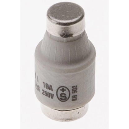 Un fusibile elettrico è un dispositivo di protezione da sovracorrente che interrompe il circuito di corrente mediante la fusione di un conduttore quando l'intensità di corrente supera un determinato valore per un determinato periodo di tempo. Questo fusibile elettrico DT I è progettato per 250 V e 10 A. Con caratteristica di attivazione ritardata.