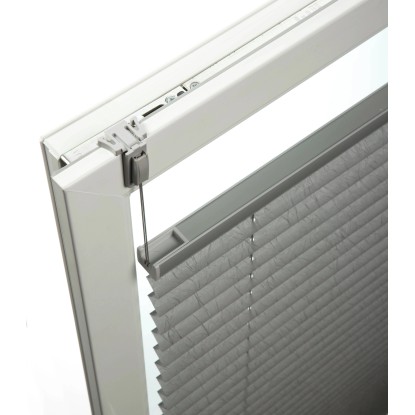 I morsetti di fissaggio per battuta regolabili della collezione Schöner Wohnen sono il tipo di montaggio ideale se la tenda plissettata deve scorrere senza fori e viti. Questi supporti vengono semplicemente fissati al battente della finestra. Grazie alla loro struttura piatta, la tenda plissettata può rimanere all'interno della battuta della finestra nonostante il montaggio a morsetto sul telaio della finestra.