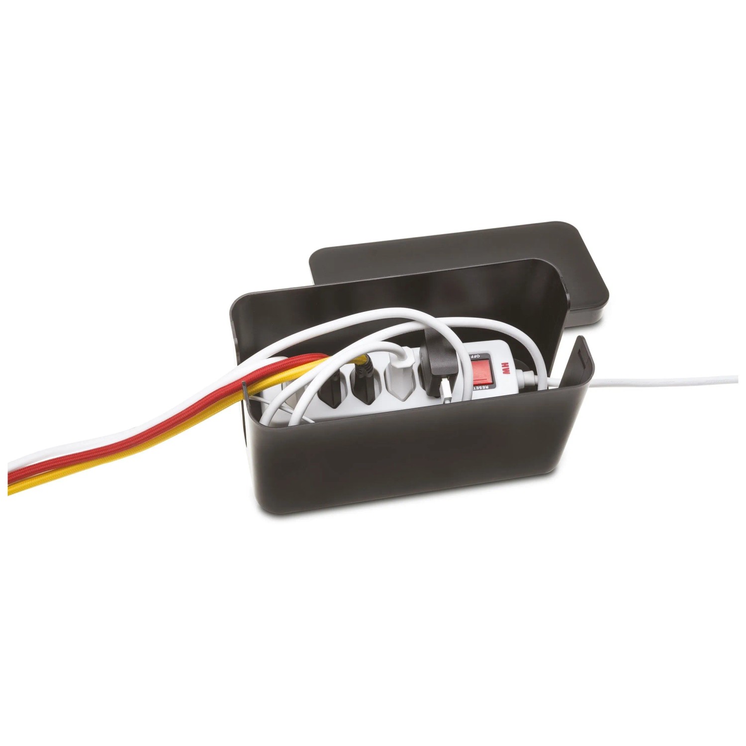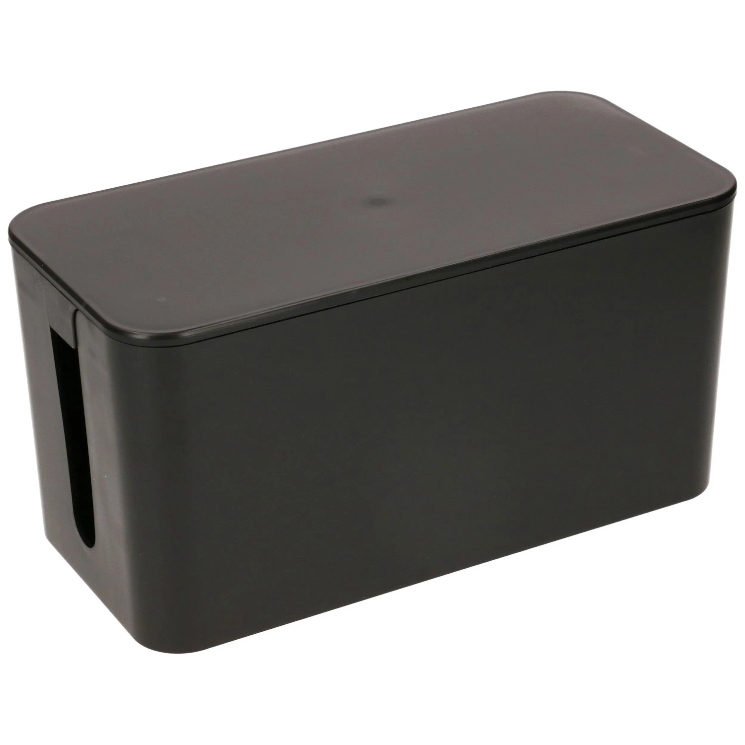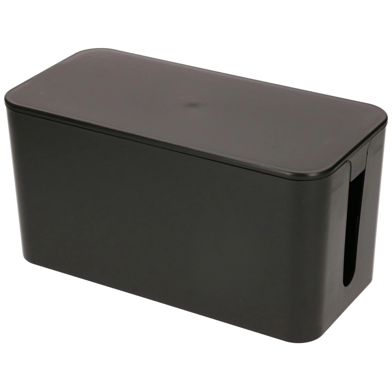 Diese Cable Facility Box Cable Home ist schwarz. Die Masse sind 23,5 x 11,5 x 12 cm. Sie hat zwei Kabeleinlässe und einen abnehmbaren Deckel.