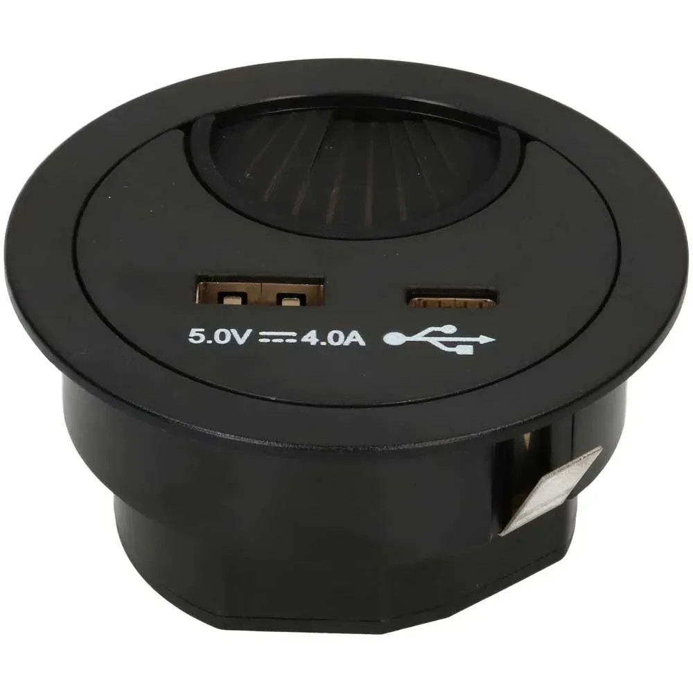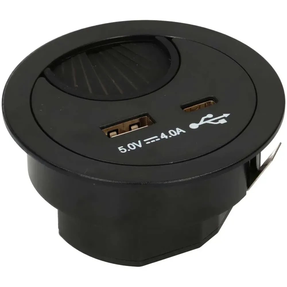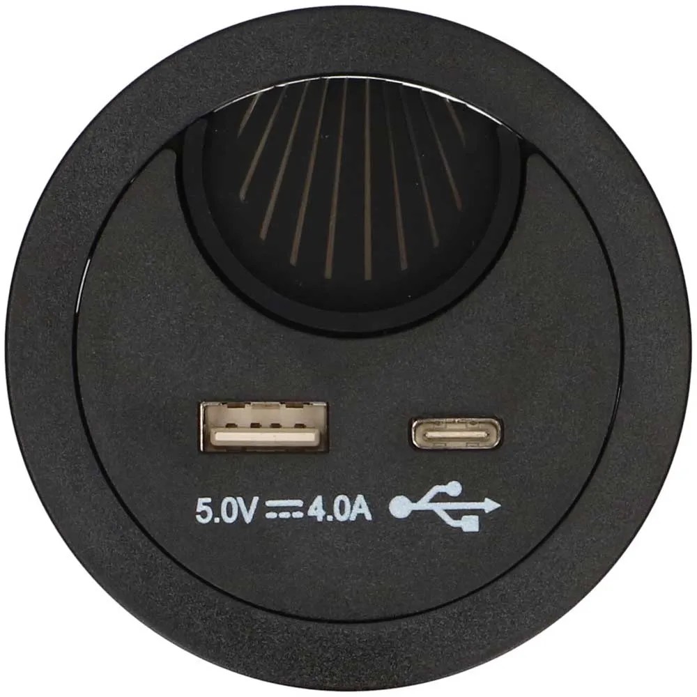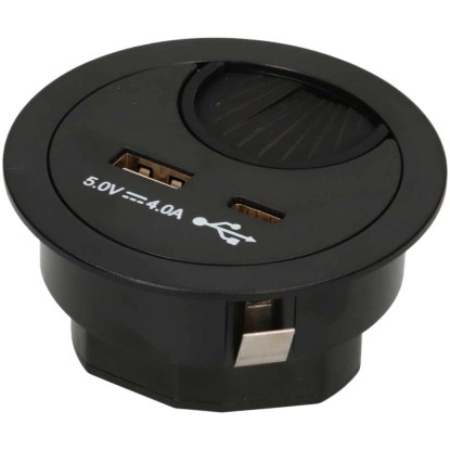 Kabeldurchführung mit USB/A- und USB/C-Charger Schwarz