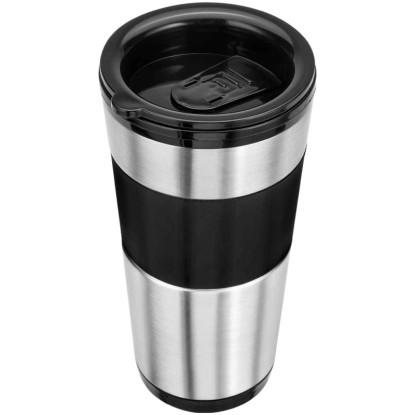Dieser Kaffeeautomat für Filterkaffee im hochwertigen Edelstahldesign liefert einfach und schnell frischen Coffee to go - mit dem vertrauten Geschmack eines aromatischen Filterkaffees. Im Lieferumfang enthalten sind ein doppelwandiger Thermo-Edelstahlbecher mit gummierter Soft-Touch-Ummantelung und einem Fassungsvermögen von 400 ml sowie ein Aromaverschlussdeckel mit Trinköffnung. Das Gerät ist kompakt und platzsparend. Der Kaffee kann direkt in den Edelstahlbecher gebrüht werden, was Plastik- und Pappbecher überflüssig macht. Der permanente Nylonfilter ist herausnehmbar. Der Ein- und Ausschalter hat eine Kontrollleuchte, ausserdem ist das Gerät mit einer Abschaltautomatik ausgestattet.